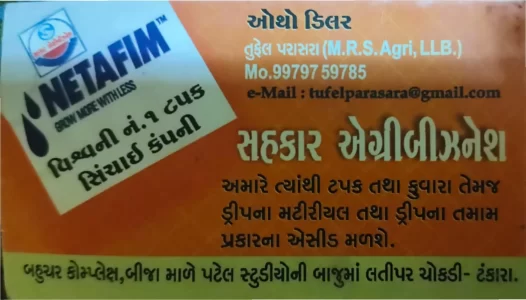 આથી ટંકારામાં સહકાર એગ્રી બિઝનેસ જેઓ છેલ્લા 18 વર્ષ થી નેટાફિમ ટપક નું કામ કરે છે તો આ સીઝનમાં ટપક કરવા માટે અમારો સંપર્ક કરો