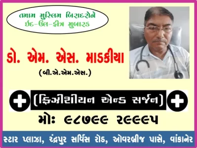 ડો. એસ. એમ. માડકિયા સૌ મુસ્લિમ બિરાદરોને ઈદ મુબારક પાઠવે છે