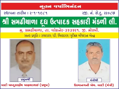સમઢીયાળા દૂધ ઉત્પાદક સહકારી મંડળી તરફથી