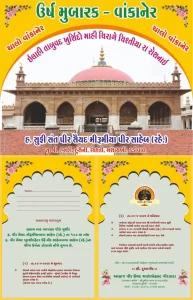 તા.૦૩-૪-૨૦૨૬ ને શુક્રવાર ઈશાની નમાઝ બાદ ખતીબે એહલેબૈત હજરત અલ્લામા મૌલાના મુફતી મોહંમદ શફીક હનફી સાહેબ – મુંબઈ (ખલીફા એ શૈખુલ ઇસ્લામ હઝરત સૈયદ મદનીમીયા અશરફી 1 અશરફી સાહેબ) નો તકરીરનો પ્રોગ્રામ રાખેલ છે. (પ્રોગ્રામ બાદ ન્યાઝ રાખેલ છે.)